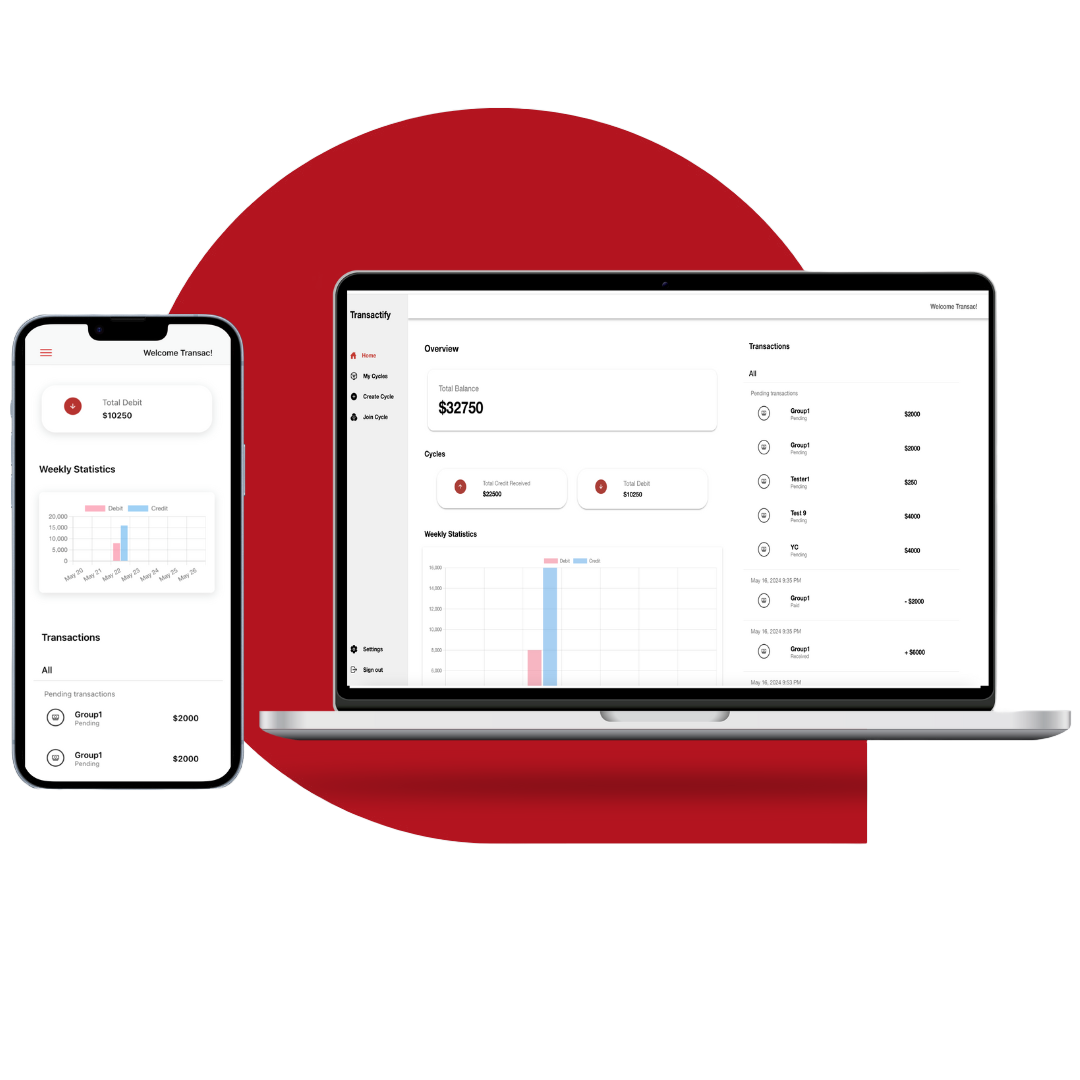Transactify reimagines traditional financial systems by integrating the proven model of ROSCAs with modern technology to provide secure, transparent, and accessible financial services. Join us to empower and uplift your financial journey alongside a community that cares.